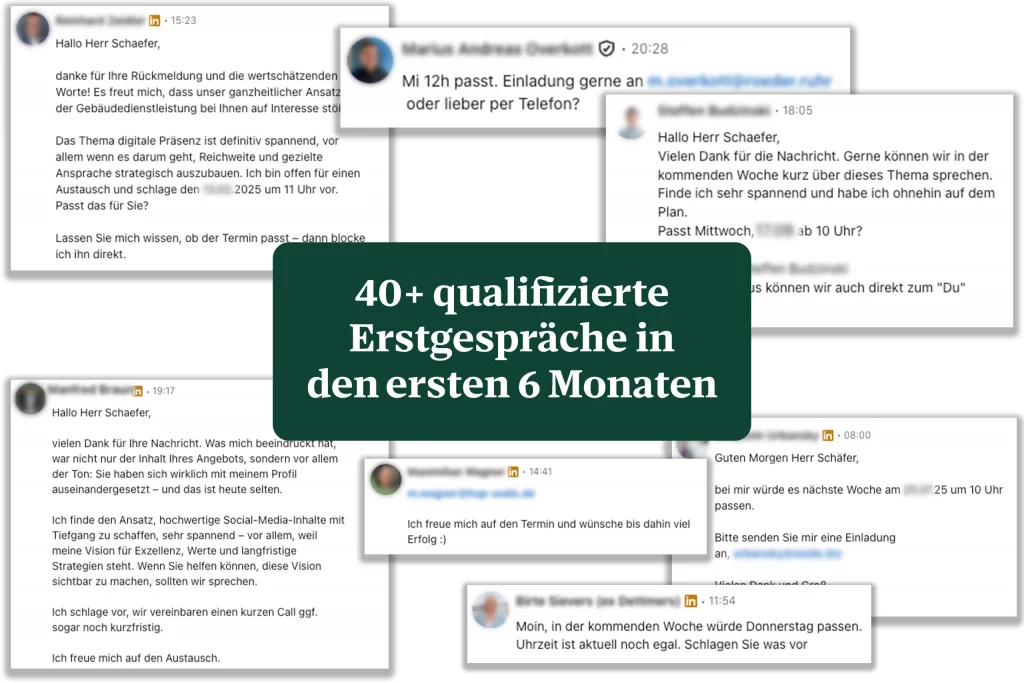 Ja – unser Ansatz funktioniert für alle B2B-Unternehmen, die Entscheider auf LinkedIn erreichen können. Wir passen die Strategie individuell an Ihre Zielgruppe an