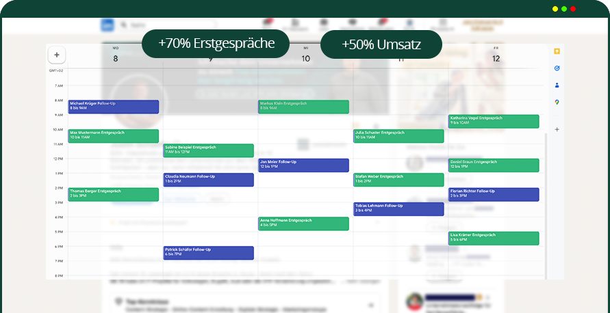 In der Regel sehen unsere Kunden bereits innerhalb der ersten 2–4 Wochen erste neue Kontakte und die ersten Termine in ihrem Kalender